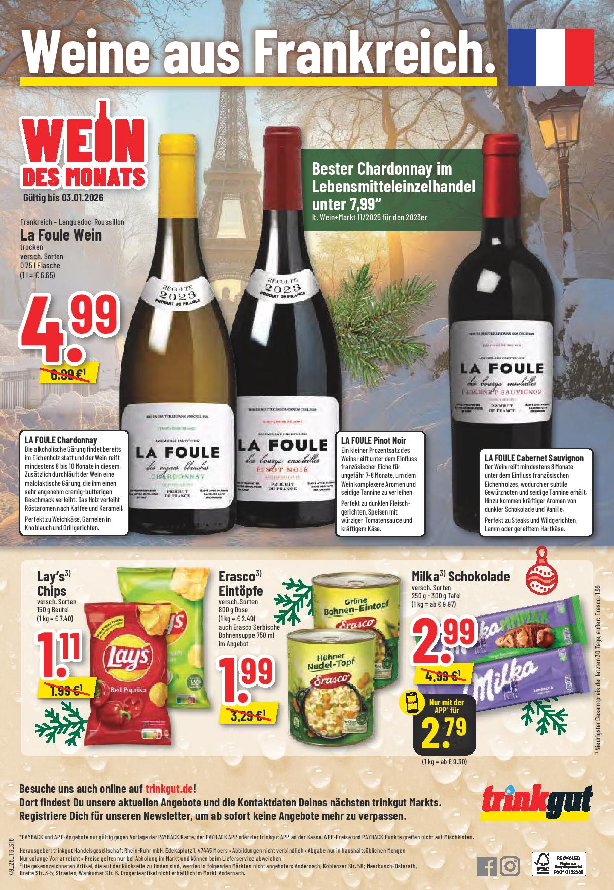 Die mehr als 230 zur Edeka Gruppe gehörenden trinkgut Märkte in Deutschland bieten ein breites Sortiment an Getränken: Limonaden, Wasser, Spirituosen, Biere und Weine – neben den gängigen Sorten auch regionale Spezialitäten und globale Marken.... Weiterlesen...